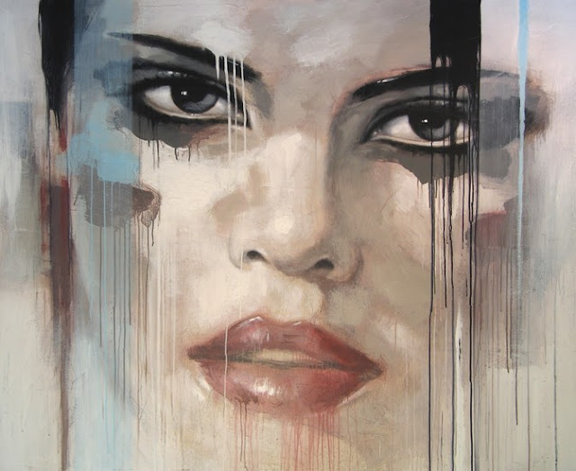 Hans Jochem Bakker un pintor que tiene una serie de pinturas del rostro de mujeres, en donde además de combinar la pintura combina texturas y eso le da un efecto muy interesante.